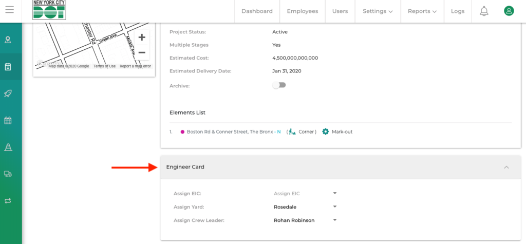 Step 4: Assign the EIC, Project Yard and Crew Leader