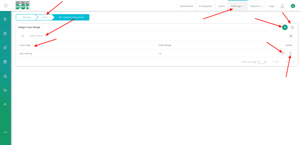- Go to settings > yard once again from the menu or by using breadcrumb. Then you will see the updated crew range.