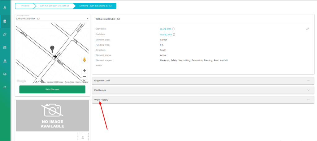 - Click on the work history tab to view the work history of that element. (See Figure 3)