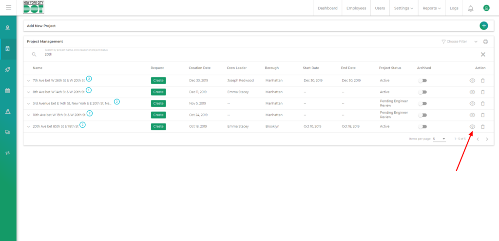 - Go to the project management screen and choose your desired projects.