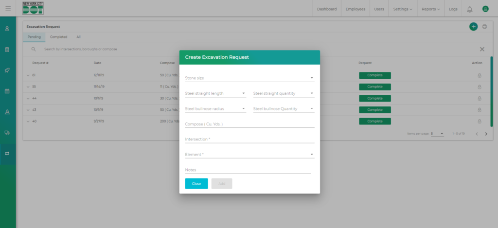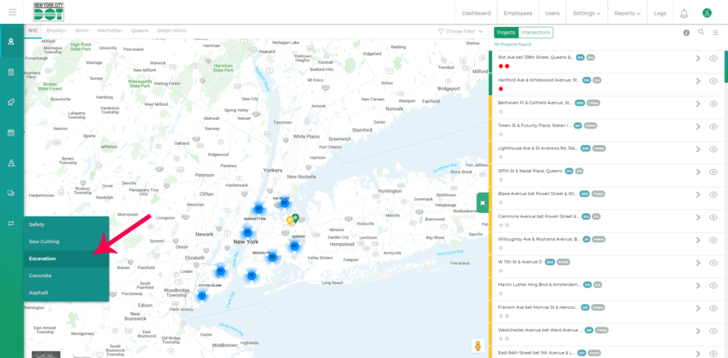 - Hover on the left menu and select Requests. Then, select Excavation. (See Figure 1)