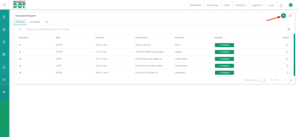 - On the request management screen, click on the top right circular green add icon. (See Figure 2)