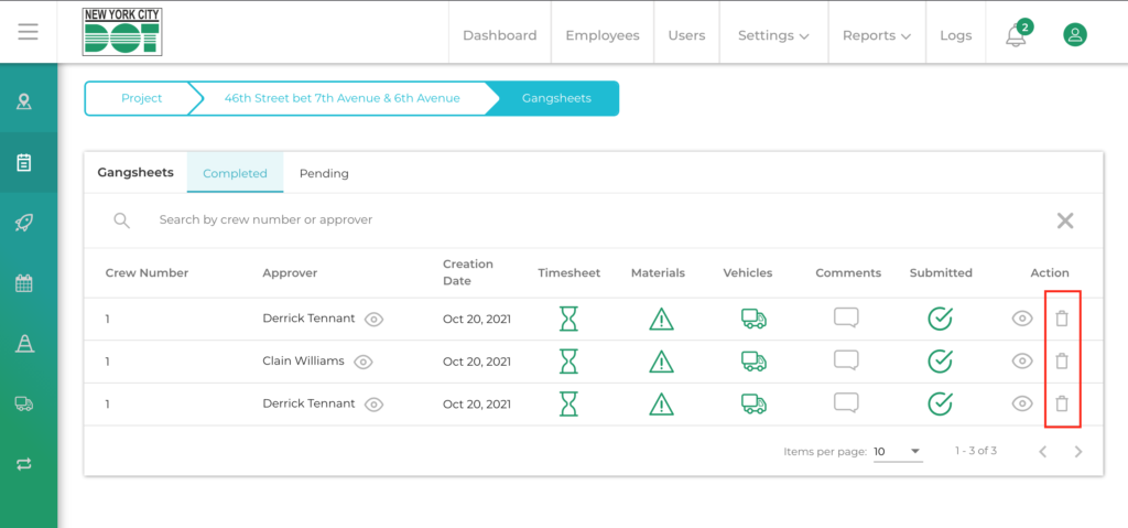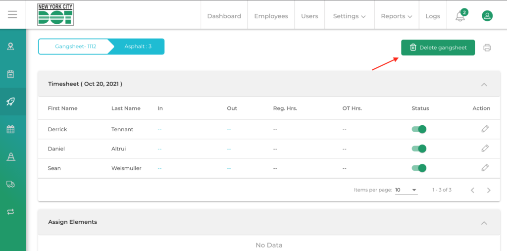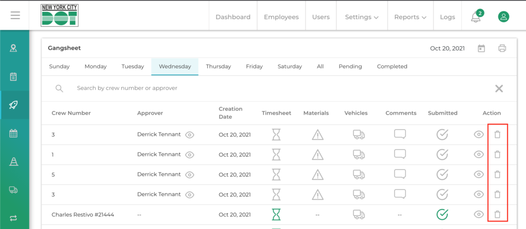 - Fixed issue: supervisor gang sheets were visible within the project work history section. This area is now restricted to only crew gang sheets.
