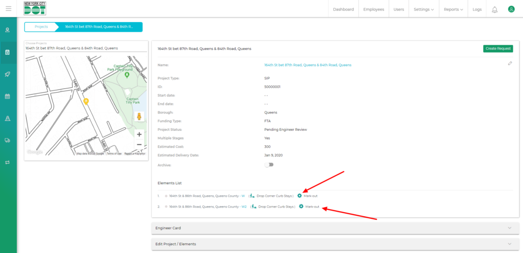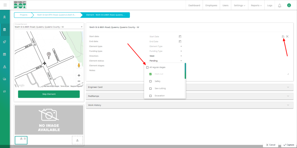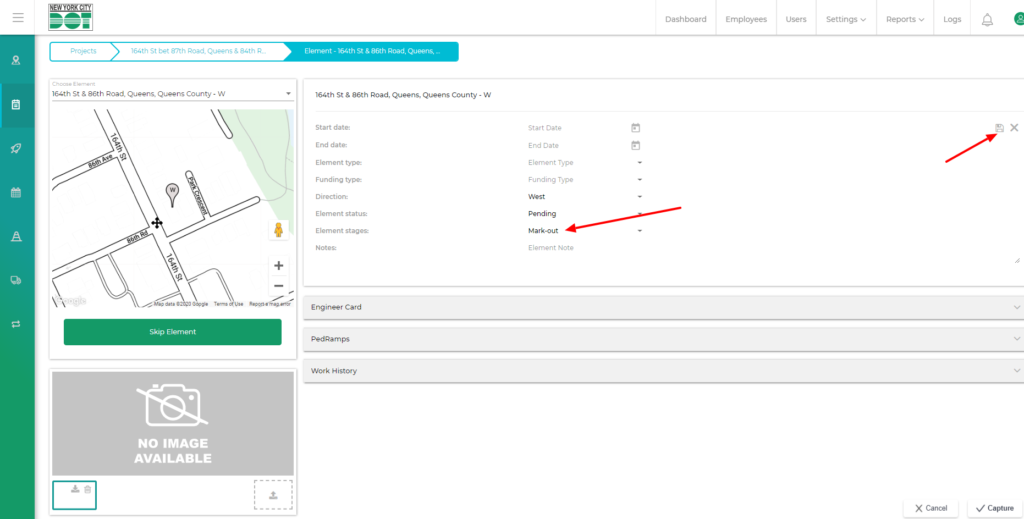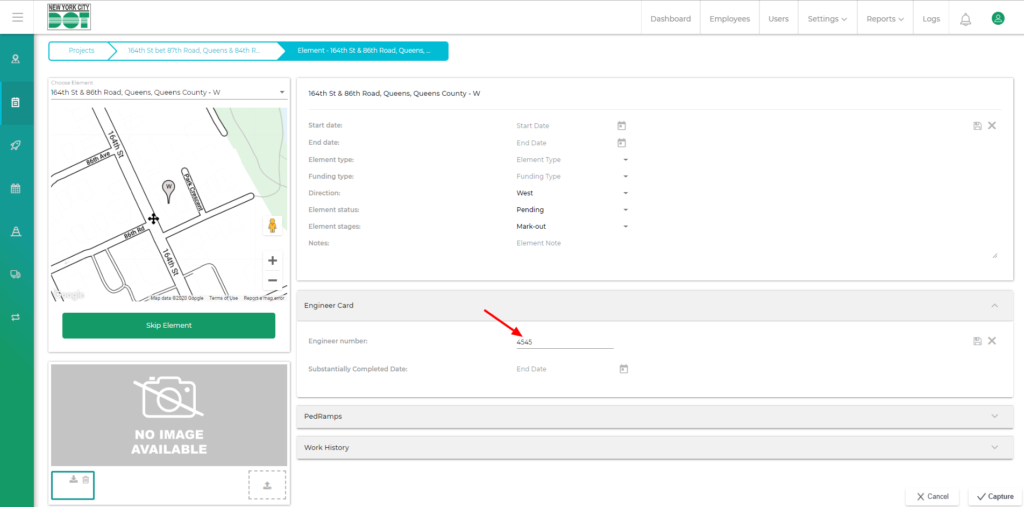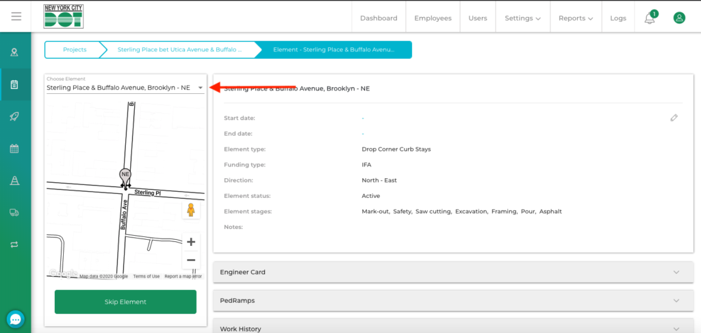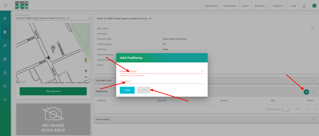 - Under the Engineer card, you will see the “PedRamps” card where you can add a pedramp or skip a pedramp that was assigned by the Planner. (See Figure 8)