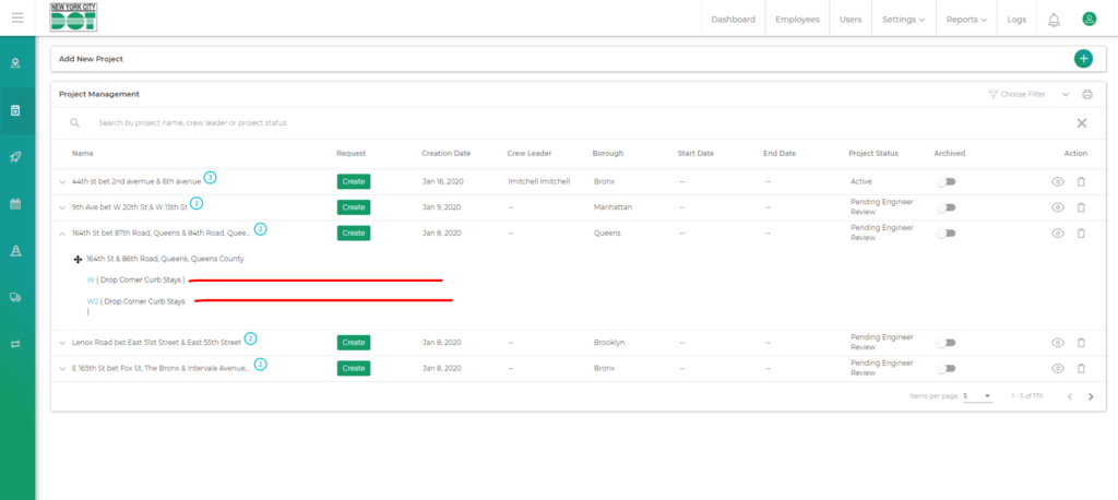 - Go to the Projects screen. Sort by “Project Status” and focus on the projects with the status- “Pending Engineer Review”.