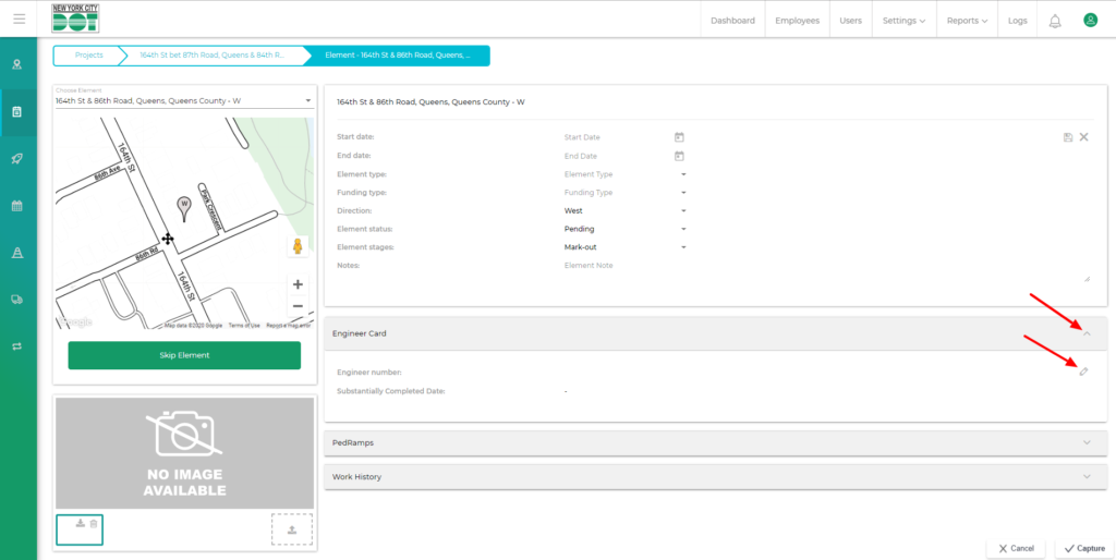 - Next, you can move to the “Engineer card” and click on the pencil icon. (See Figure 6). Here you can provide the “Engineer number” for the element. (See Figure 7)