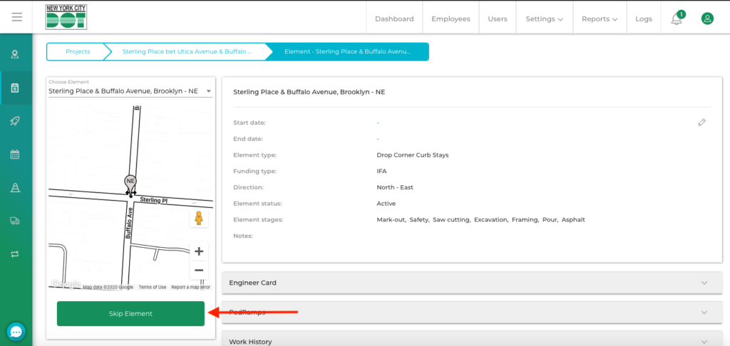 - If the entire element needs to be Skipped, you can click the green “Skip Element” button. (See Figure 9)